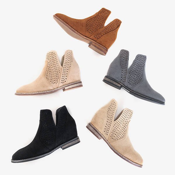 - Fashionable women's boots in the style of cowgirls on a hidden anchor. The upper is made of eco-suede leather and partly has openwork finish. The insole is lined with eco-leather. They will be perfect for everyday wear.