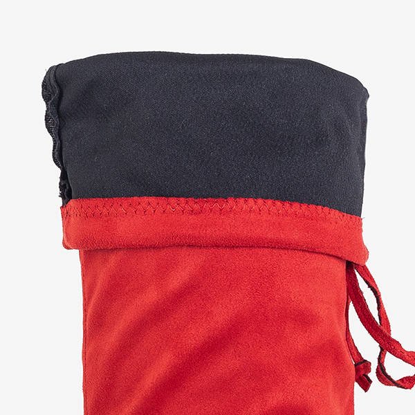 - Stylish women's over-the-knee boots, made of ecological suede leather. Model with a zipper to the middle of the calf, with a fabric insert inside. They have a drawstring at the back, which allows you to adjust the width of the upper part of the upper.