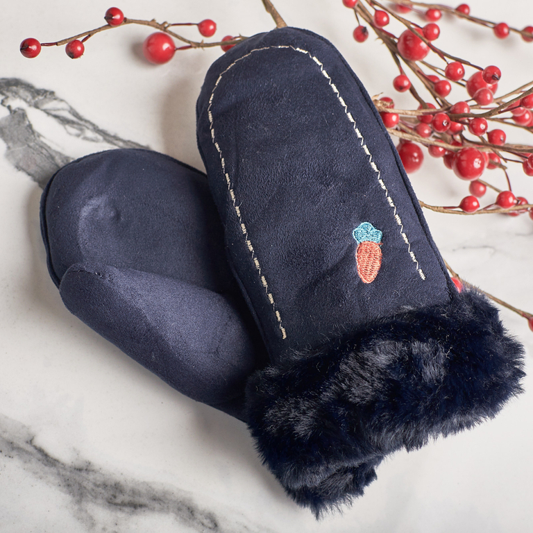 - Warm Eskimo gloves for children made of soft eco-suede. Fur lining inside. Perfect for cold days!