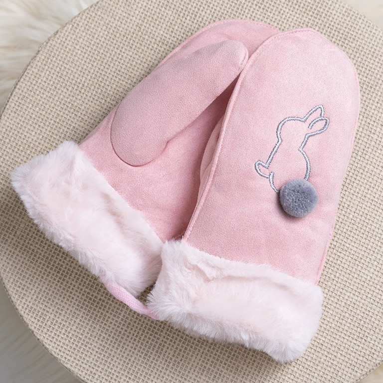 Pink children's gloves with a string and mitts - Gloves