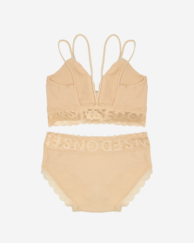 • Women's underwear set, decorated with delicate lace. Bra with thin straps, with removable cushions, without underwire. Briefs with a wide elastic waistband. Perfectly emphasizes the strengths of every woman. NOTE: Measurement accuracy (+/-) 1 cm.