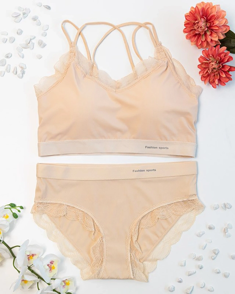 Women's beige lingerie set with lace - Underwear