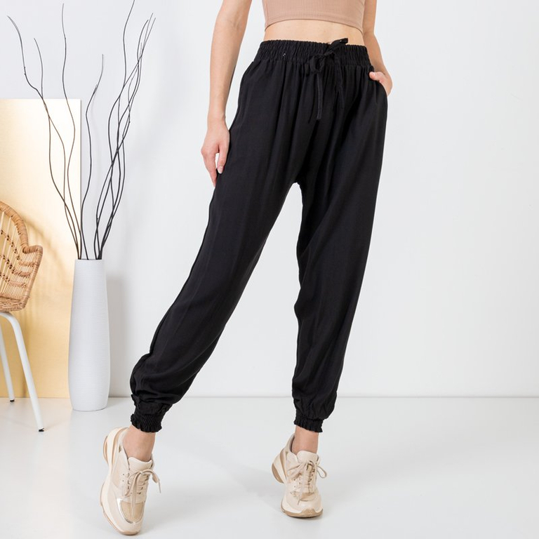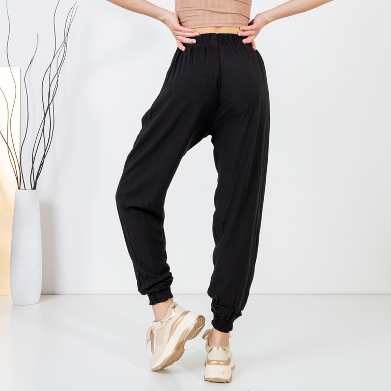 - Lightweight women's fabric harem pants, made of cotton fabric. The model has an elastic waistband and legs, in the front - two slip pockets. They provide full comfort and freedom of movement. NOTE: Measurement accuracy (+/-) 1 cm.
