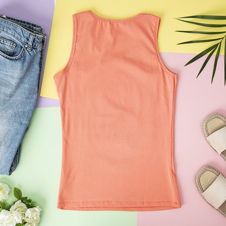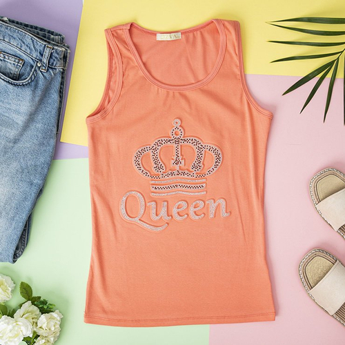 • Tasteful women's top with wide straps, made of cotton fabric. Model with a round neckline, decorated with cubic zirconia on the front. NOTE: Measurement accuracy (+/-) 1 cm. Dimensions measured flat.