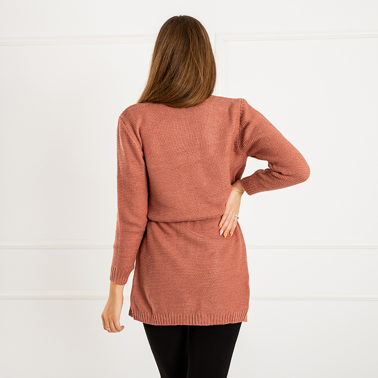 Dark pink women's tied cardigan with colored circles - Clothing