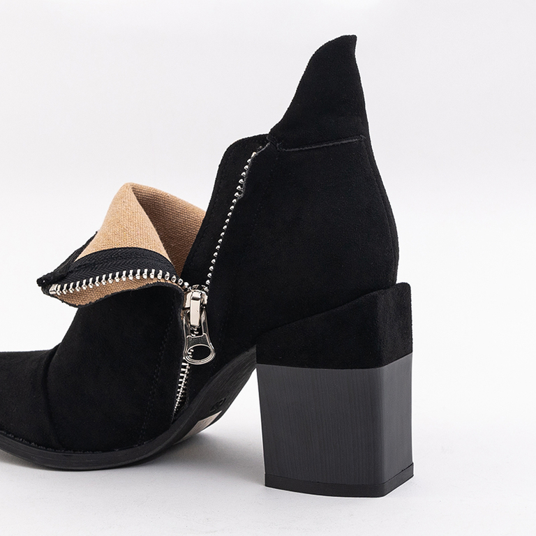 - Unique women's boots with cutouts on a sturdy post. The upper is made of eco-suede, while the insole is covered with ecological leather. Model fastened with a zipper on the inside. They will perfectly fit into any everyday styling!