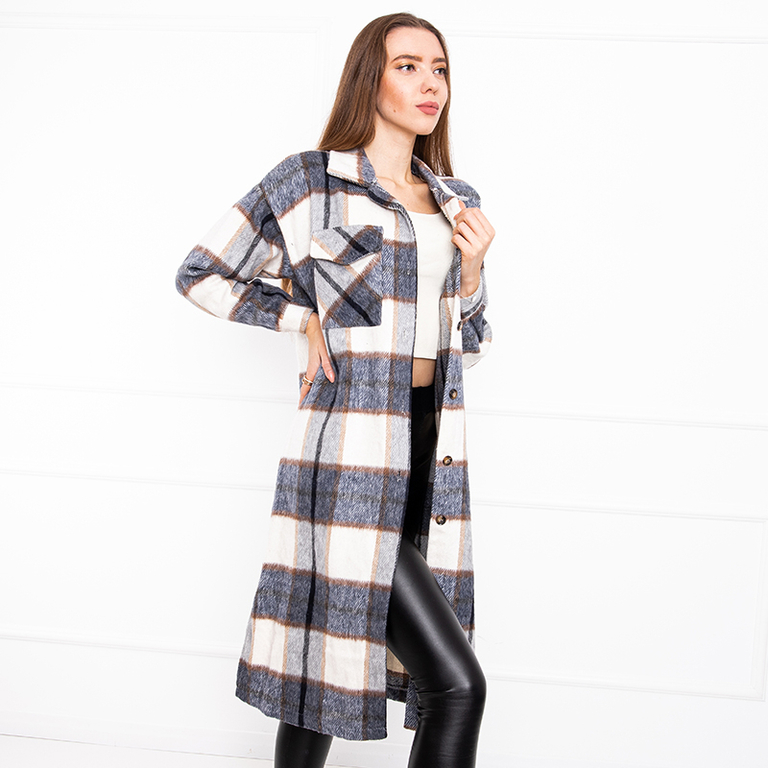 - Long women's shirt in a loose cut with a colorful check pattern. Pleasant to touch and comfortable. The model has two pockets. A great choice every day! NOTE: Measurement accuracy (+/-) 1 cm.