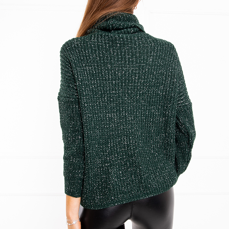- Warm women's turtleneck sweater, made of acrylic material interlaced with silver thread. The model with a cutout on the belly, has long sleeves. Must have in the closet of every woman! NOTE: Measurement accuracy (+/-) 1 cm.