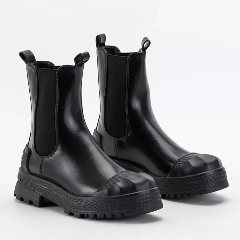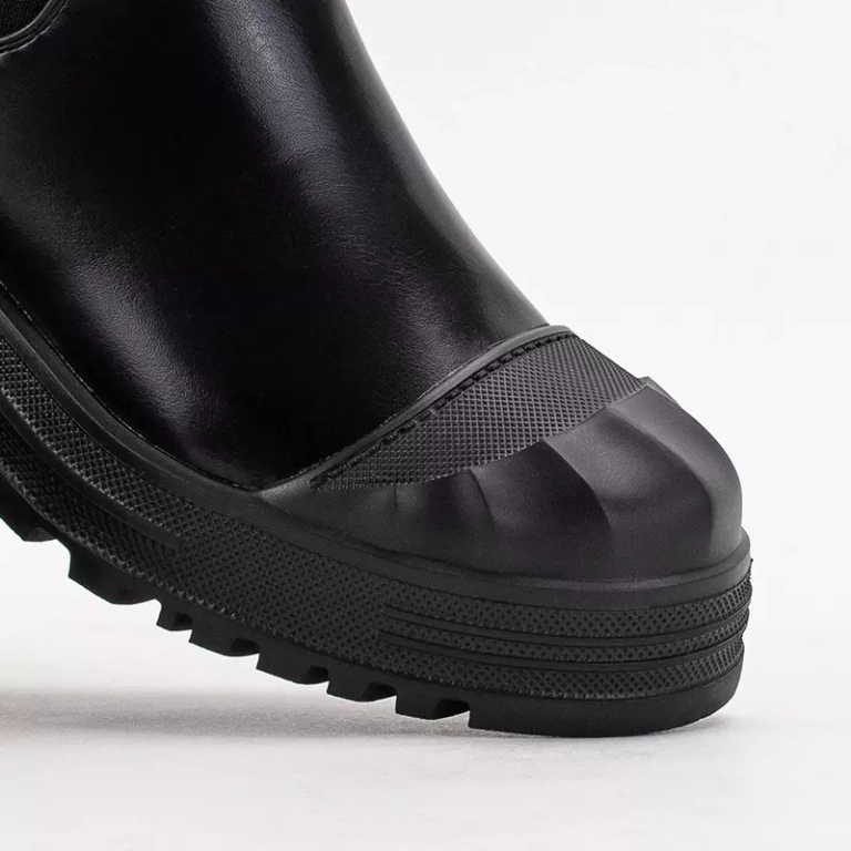 - Women's high boots made of ecological leather. Model without a clasp, inside has a gentle warming, the sole is rubber. Note: the product has a broken off material.