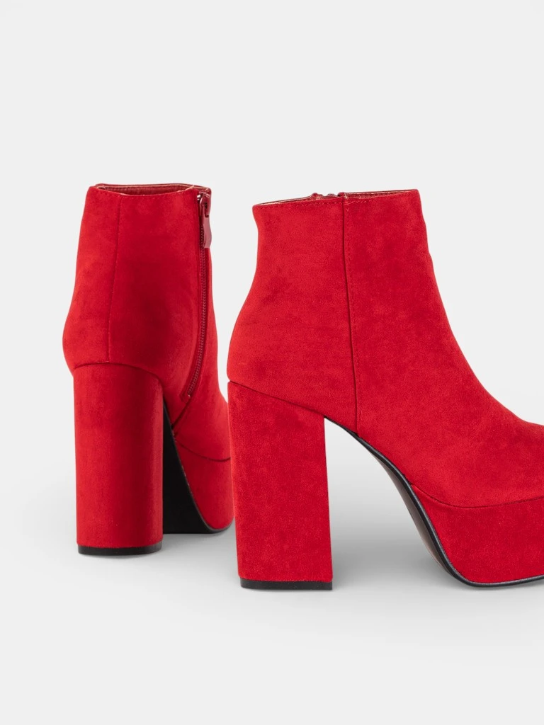 • Fashionable women's boots with a high stiletto and a massive platform. The upper is made of soft organic suede. Inside they have a delicate fur warming. On the side they are fastened with a zipper. RED WINTER BOOTS ALLIA INSULATED BOOTS