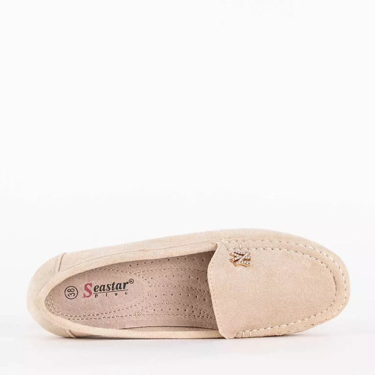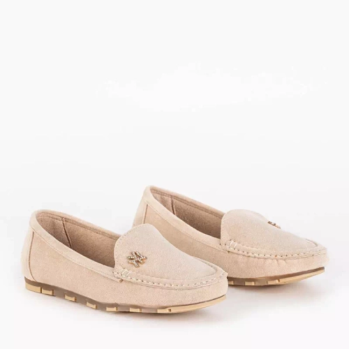 OUTLET Women's beige eco-suede moccasins with Pixila decoration - Footwear