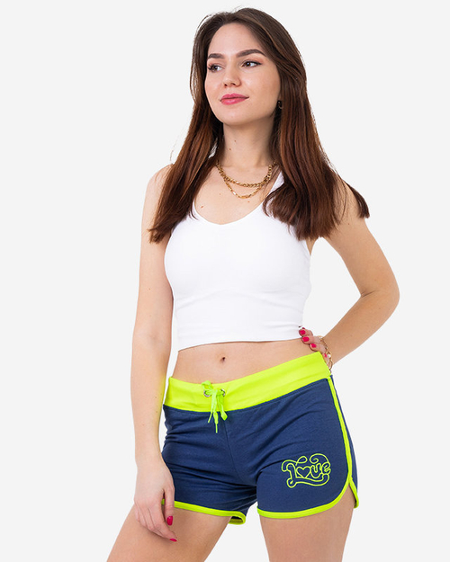 - Very comfortable, short shorts made of soft, pleasant fabric. Model with an elastic band and tied drawstrings at the waist. Shorts have neon inserts and stylish patches NOTE: measurement accuracy (+/-) 1 cm. Dimensions measured flat.