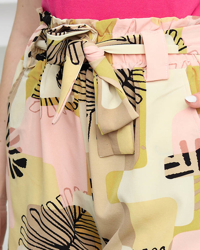- Very comfortable and elegant shorts made of soft, pleasant fabric. Model with an elastic band and an additional belt at the waist. They are decorated with an interesting, floral pattern! NOTE: measurement accuracy (+/-) 1 cm. Dimensions measured flat.