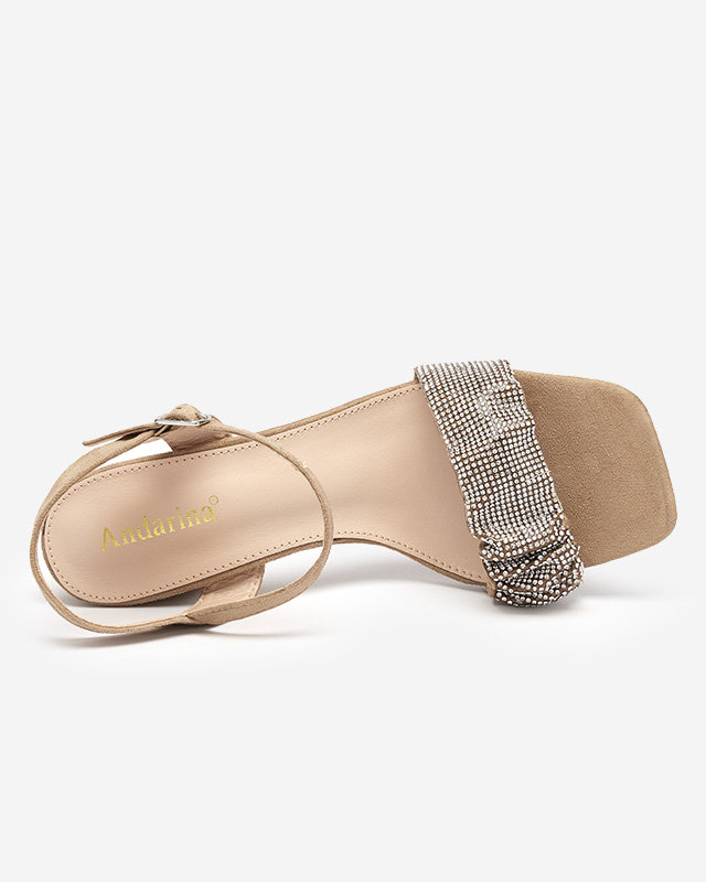 Light brown women's sandals on a post with Trieste cubic zirconias - Footwear