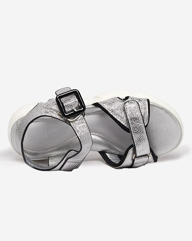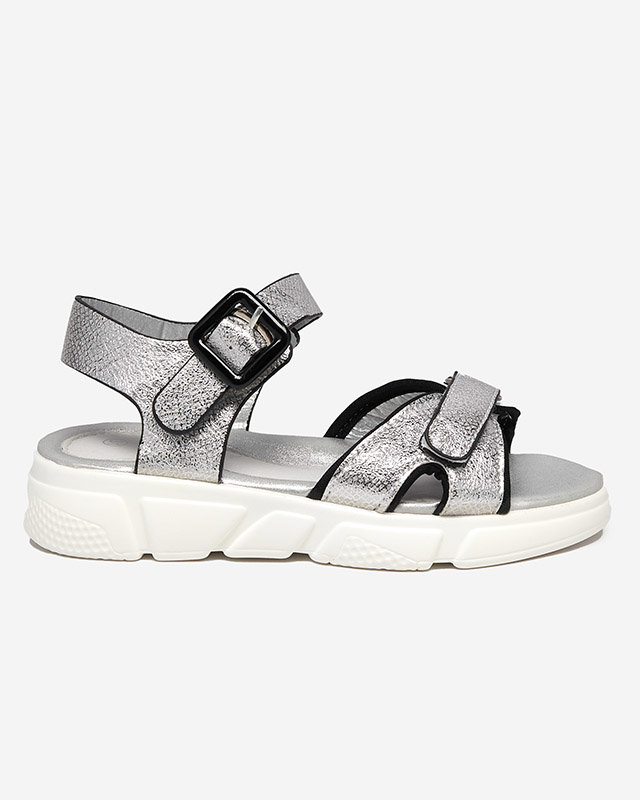 • Effective girls' sandals on a flat sole, made of shiny fabric. Footwear fastened with a buckle around the ankle and Velcro on the toe. In the middle a soft, eco leather insole. Perfect for hot days!