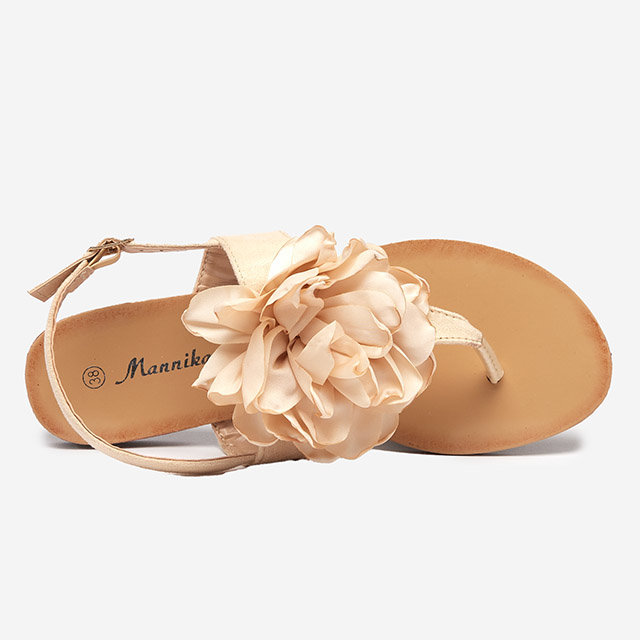 - Unique flip-flops made of ecological chamois leather. The model has a fabric flower ornament. The shoes are fastened with a buckle on the ankle, the insole is made of eco-leather. A beautiful complement to summer stylizations!