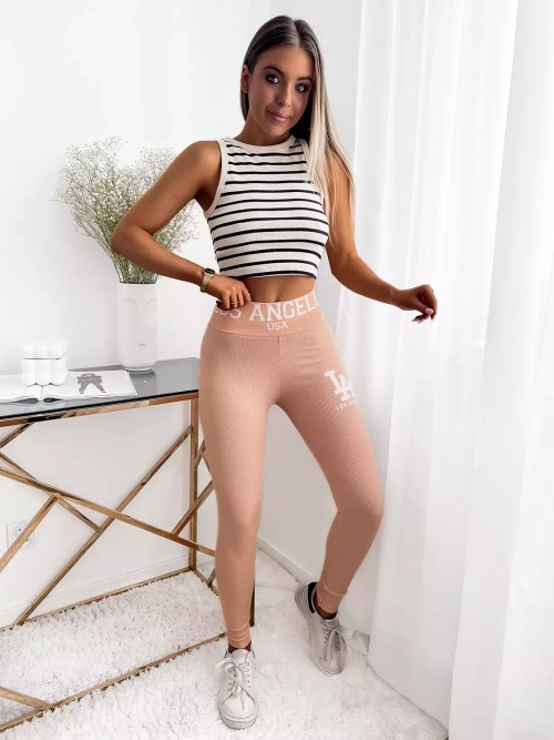Women's powdered ribbed leggings with inscriptions - Clothing