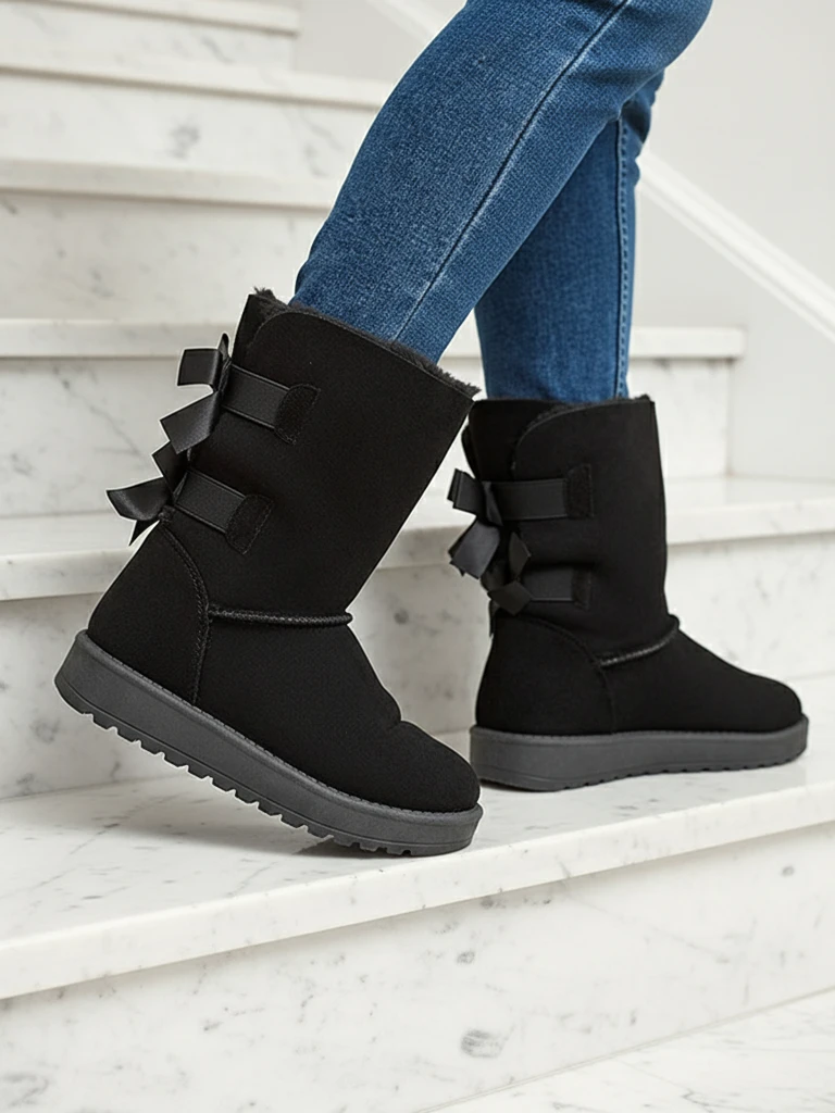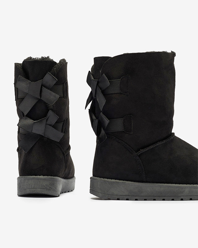 • Timeless women's slip-on snow boots, made of ecological suede leather. The model is decorated with bows at the back, the inside is lined with soft fur. They will perfectly emphasize any of your stylizations! BLACK INSULATED WINTER SNOW BOOTS MASSAP