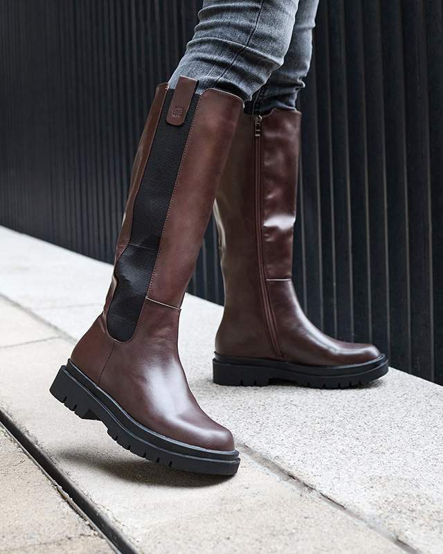 Women's eco-leather knee-high boots in brown color Orikas - Footwear