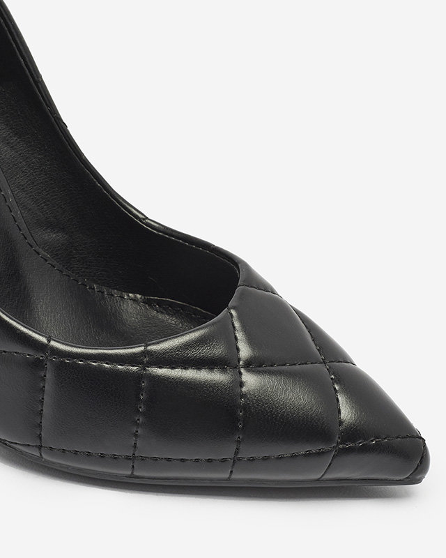 - Stylish women's quilted pumps on a high stiletto heel. The upper is made of eco leather. The insole is also eco leather. Pointed nose will add chic and elegance to any styling!