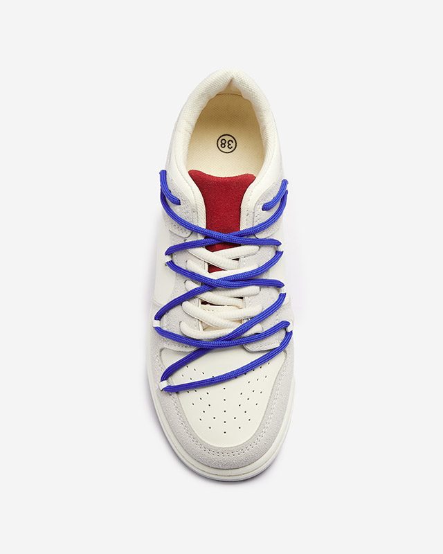 White-gray women's sports sneakers with navy blue laces Olierinc - Footwear