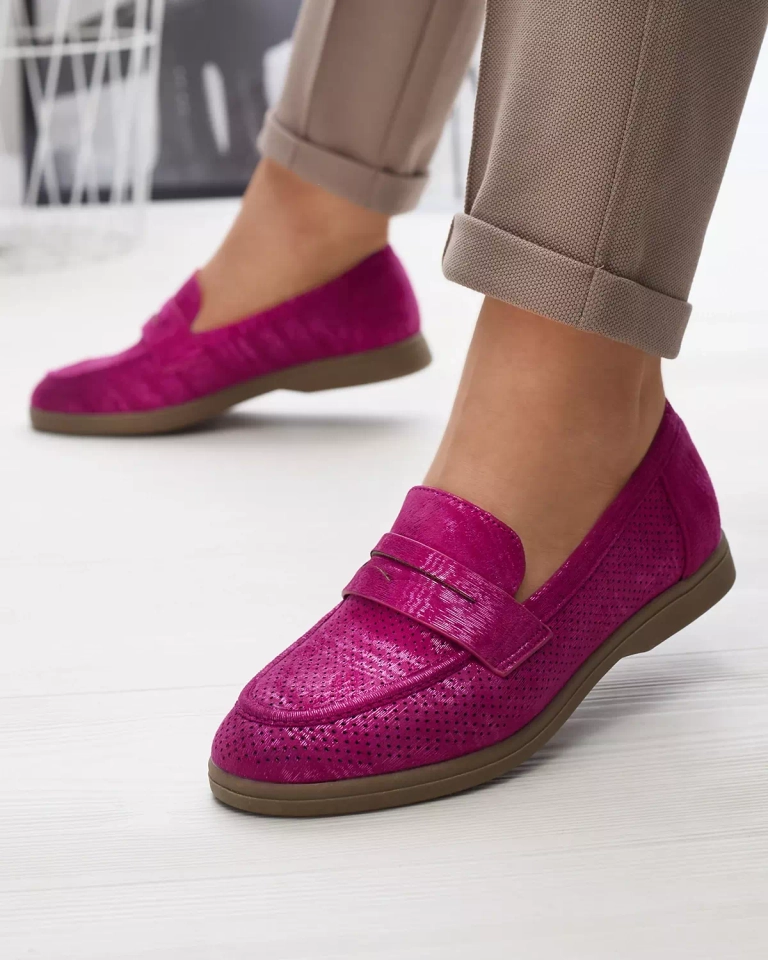 Fuchsia openwork women's moccasins with shiny finish Idesa - Footwear