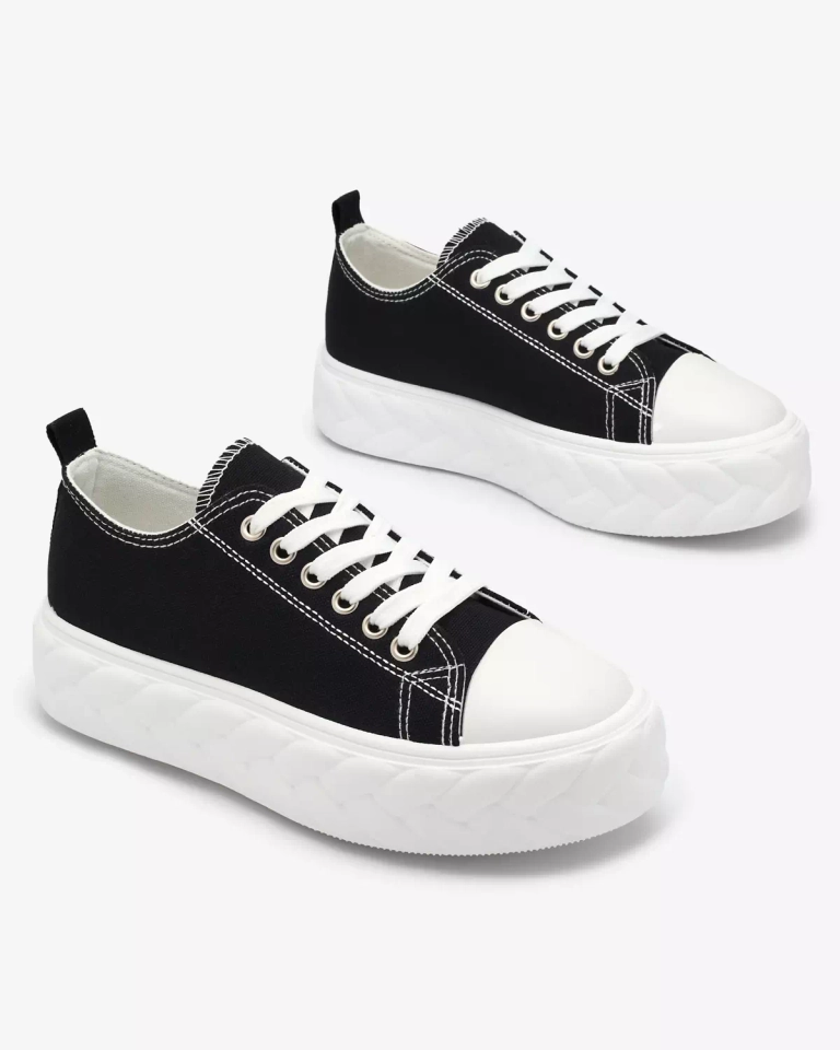 - Mega stylish women's monochromatic sneakers. A pair entirely made of fabric material. Model on a thick platform decorated with embossing a'la plaid. The upper is laced. They will be great for everyday styling!