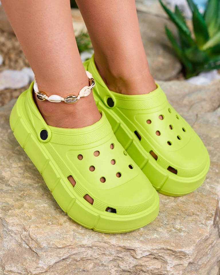 Royalfashion Neon green women's flip-flops with openwork trim Mightty