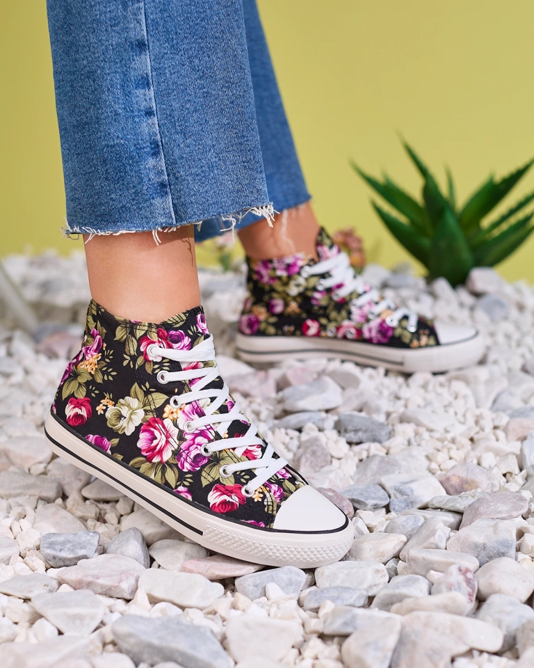 Royalfashion Women's high black sneakers in floral pattern Soxic