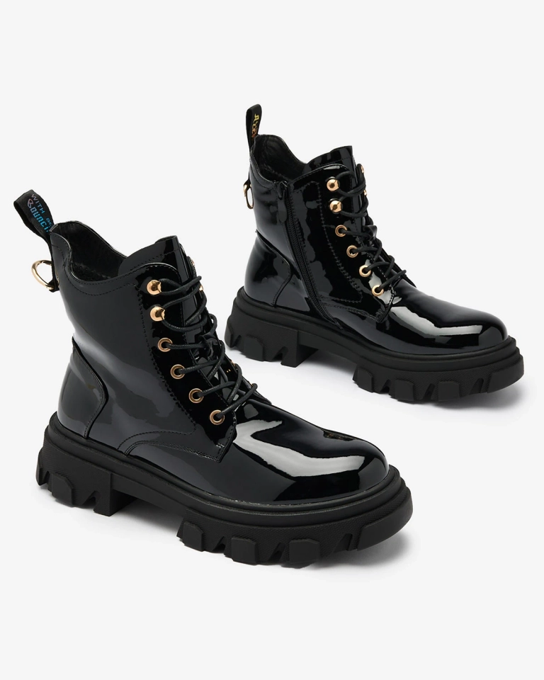 Royalfashion Black lacquered women's insulated Setogia bagger boots