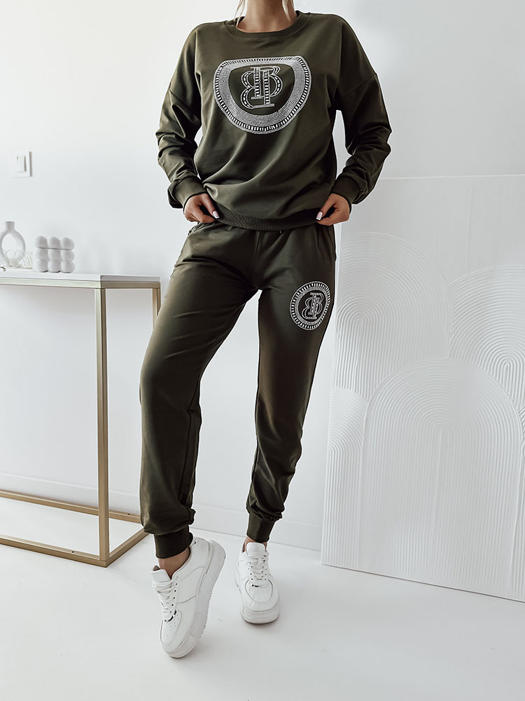 - Sensational women's sweatshirt set made of cotton material. Blouse with long sleeves, tucked in over the head. Pants with elastic and pants at the waist and 2 pockets. All decorated with zircons. NOTE: Measurement accuracy (+/-) 1 cm.