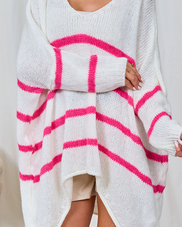 - Women's long sweater made of pleasant knitted material in a striped pattern. Sweater without fastening. An ideal element of your closet to complement autumn styling! NOTE: Measurement accuracy (+/-) 1 cm.