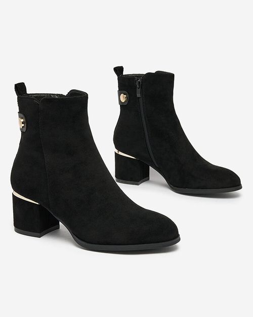 - Sensational women's low stiletto boots. The upper is made of organic suede leather, the insole is made of material a'la fur. The footwear is zippered. A great choice for autumn!