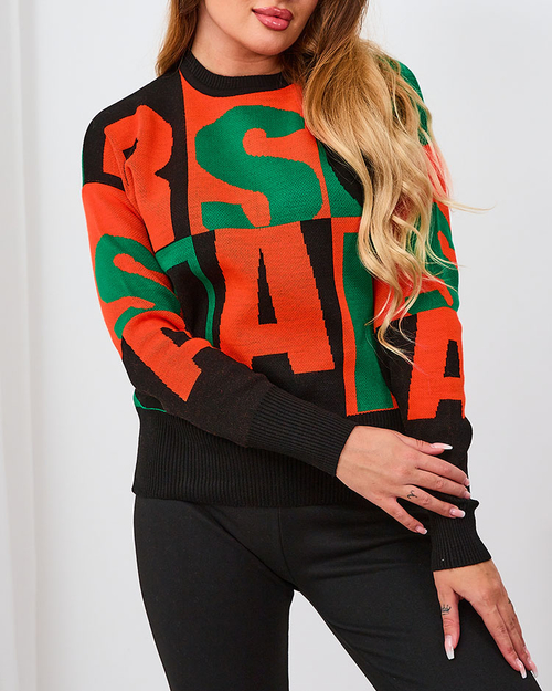 - This casual sweater is the essence of comfort and charm. Made of soft material, the sweater has a round neckline and long sleeves. The colorful letters add to its unique charm!