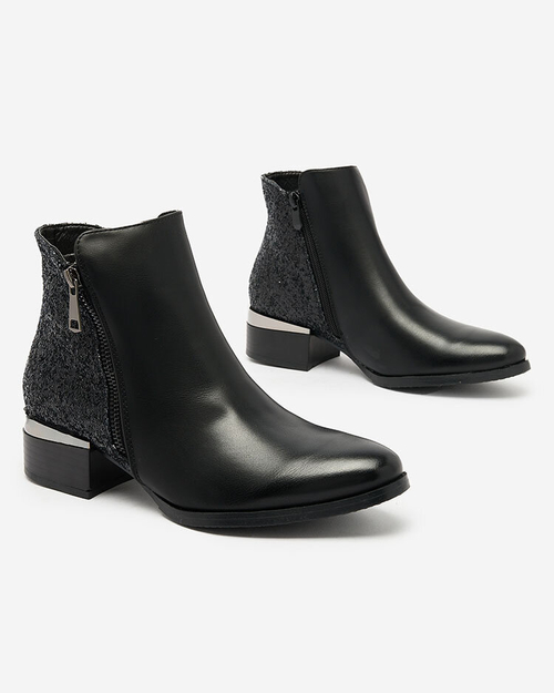 - Classic women's boots a'la sable, upper made of ecological leather. Inside insulated with soft fur. Footwear zippered, decorated with glitter at the back. Stylish and comfortable!