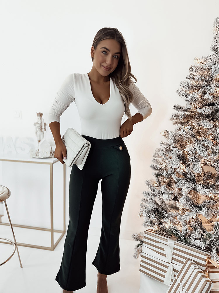 - Eco-leather leggings a'la bells are a combination of style and comfort. The model with an elastic waistband, perfectly adapts to the figure, providing comfort and freedom of movement. These leggings add a fashionable touch to your styling.
