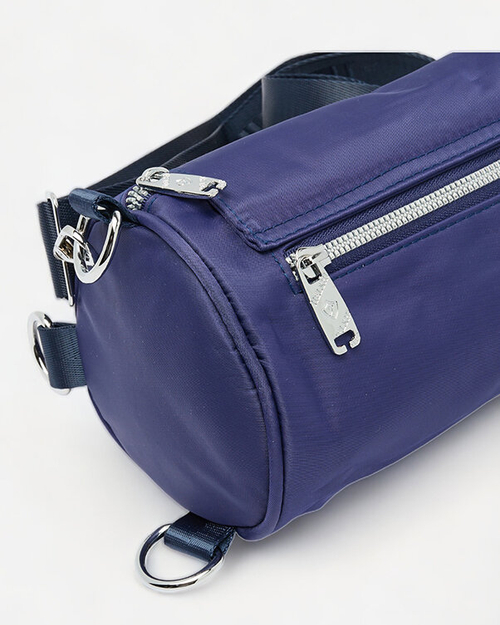 - Small women's handbag made of slippery fabric. It has one compartment, one zippered inner pocket and 3 zippered outer pockets. Plus a wide, adjustable strap. A stylish accessory for long walks!