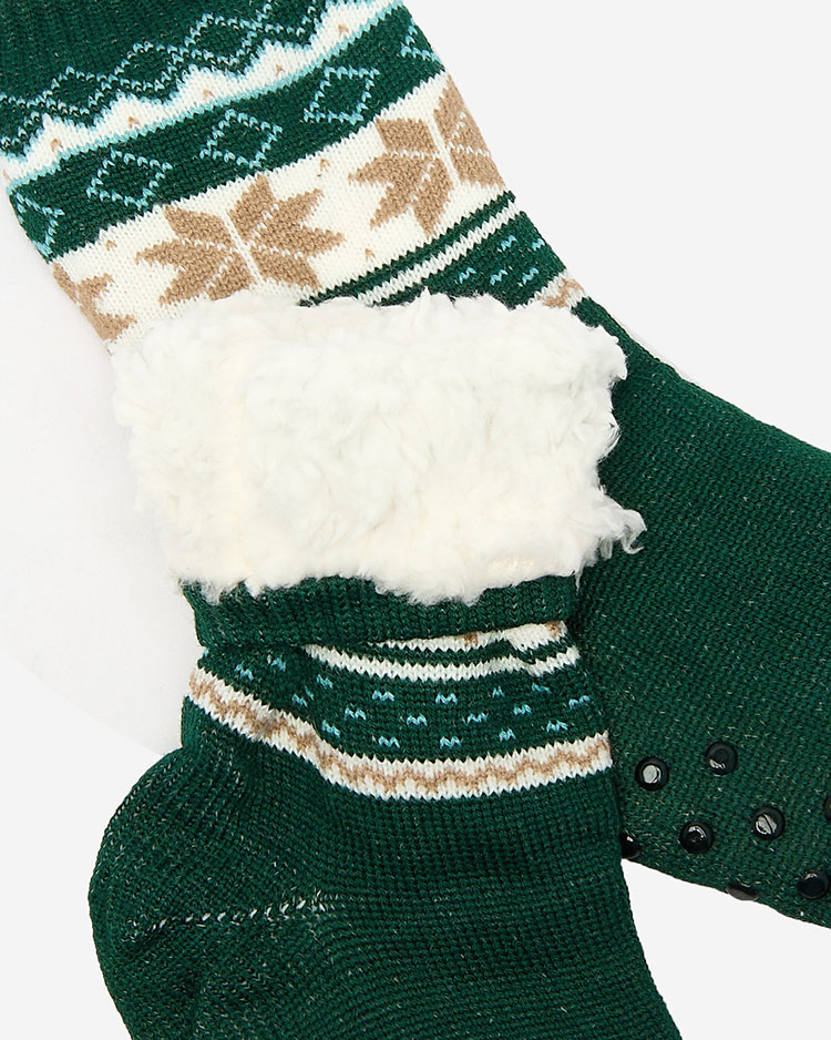 - Thick men's socks, insulated inside with warm sheepskin. The model is finished with a Christmas pattern and a non-slip bottom. The socks will be great for colder days!