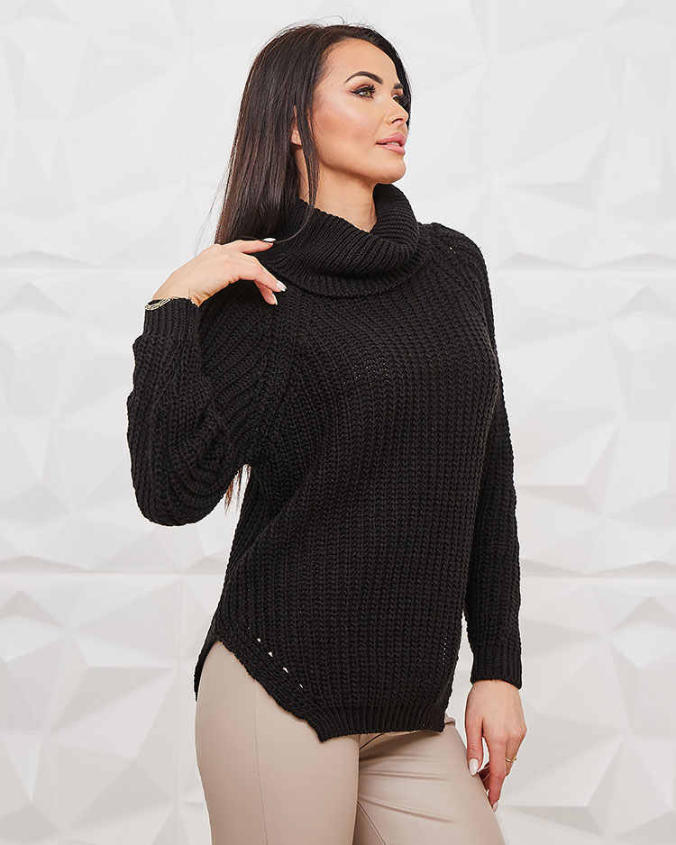 • This classic sweater is the essence of comfort and charm. Made of soft material, the sweater features a turtleneck and long sleeves. The knitted plaid adds a unique charm to it!