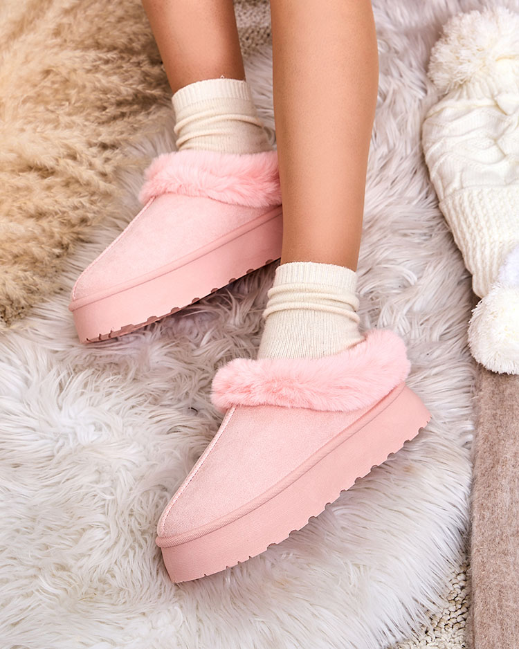 - Mega stylish short women's insulated snow boots made of organic suede leather. They have a center filled with fur. Shoes on a high platform - perfect for winter casual outfits!