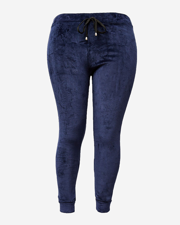 - Insulated tube sweatpants made of soft, lightweight fabric a'la velour. Elastic band at the waist allows the pants to fit perfectly. In addition, the embellishment of the side stripes.