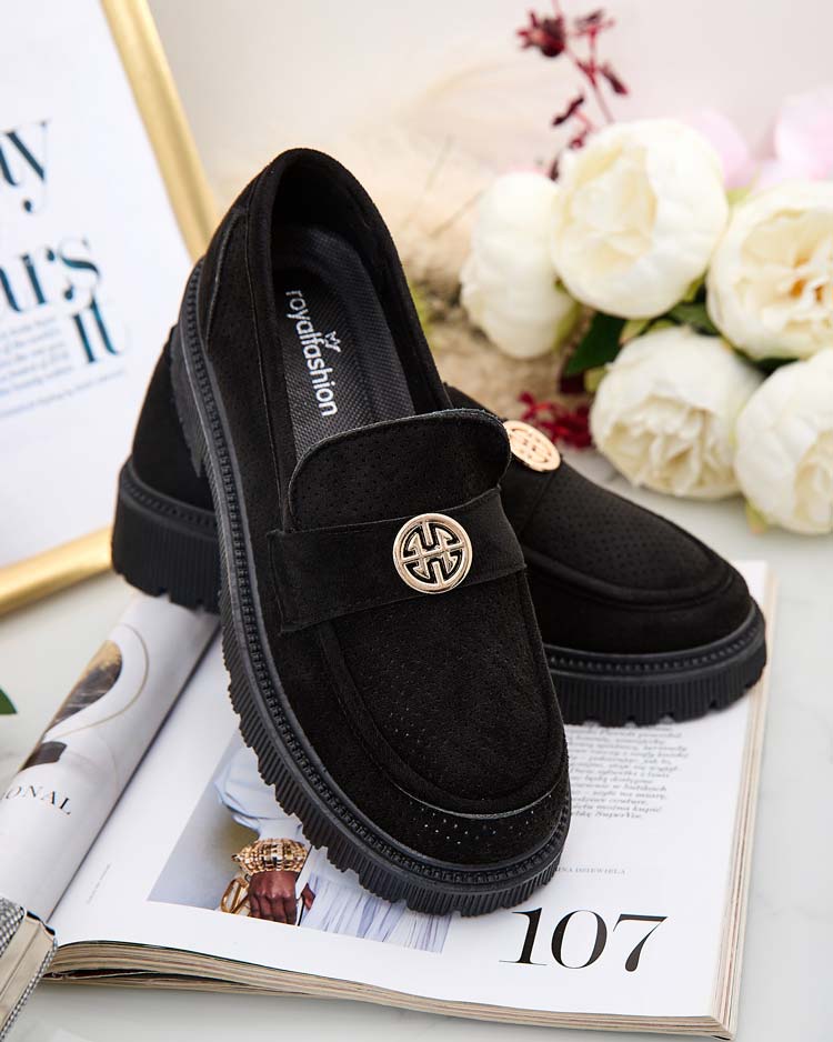 - Classic women's moccasins on a thicker sole. The pair is made of organic suede leather, while the insole is fabric. Perfect for casual outfits!