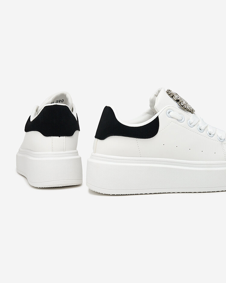 • Women's sneakers on a flat sole - the perfect combination of style and comfort. Footwear made of ecological leather. Lace-up model, has a fabric insole and ornaments with zircons. Ideal for active people!