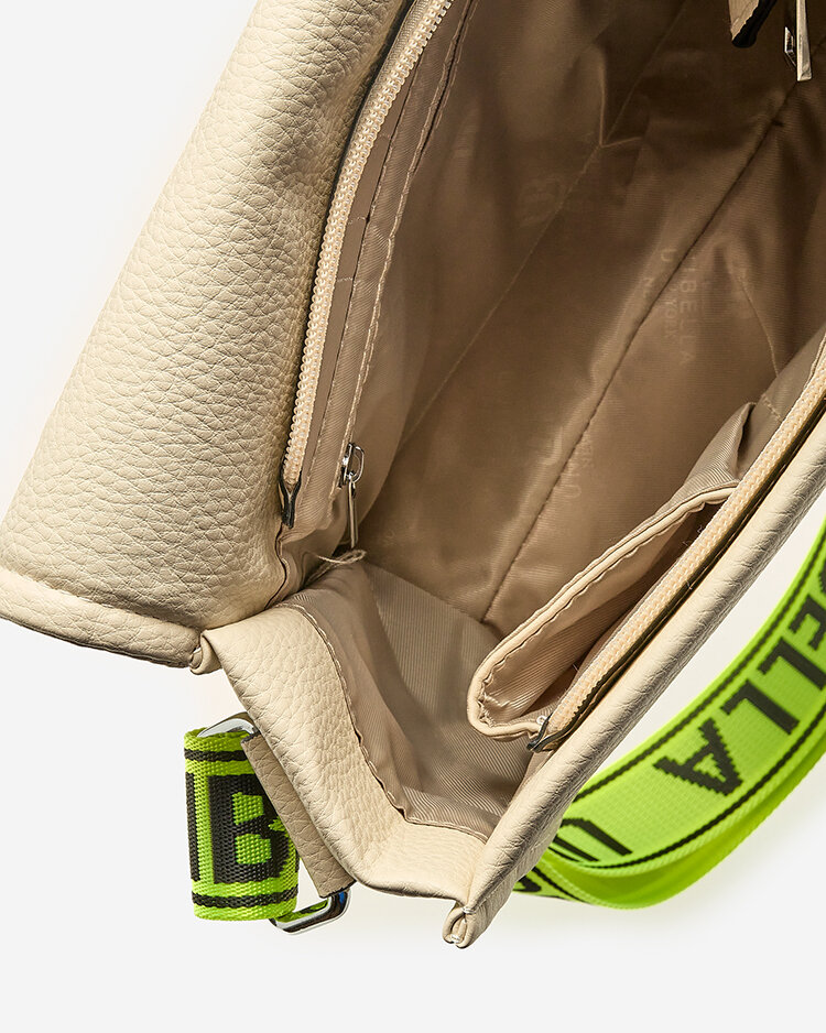 - Unique small women's handbag made of eco leather with neon yellow adjustable strap. The model has 4 pockets. A combination of elegance and sporty style!