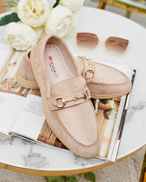 - Casual women's moccasins on a flat sole. The model is made of ecological leather. Inside the insole made of natural leather. A perfect base for every day!