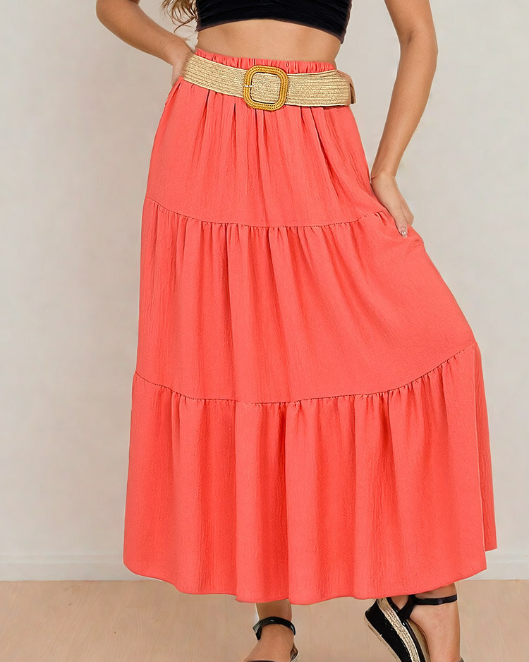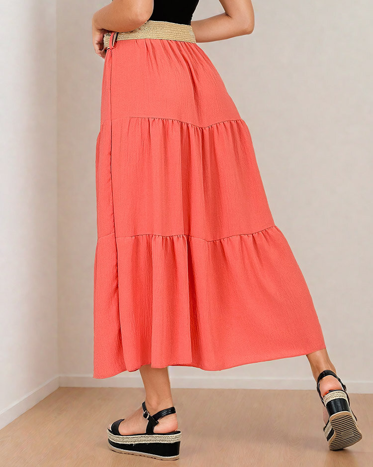 • Timeless women's midi length skirt. The model has an elastic waistband, which perfectly emphasizes the waist. In addition, a braided belt included. This skirt is a great accent to your everyday look!