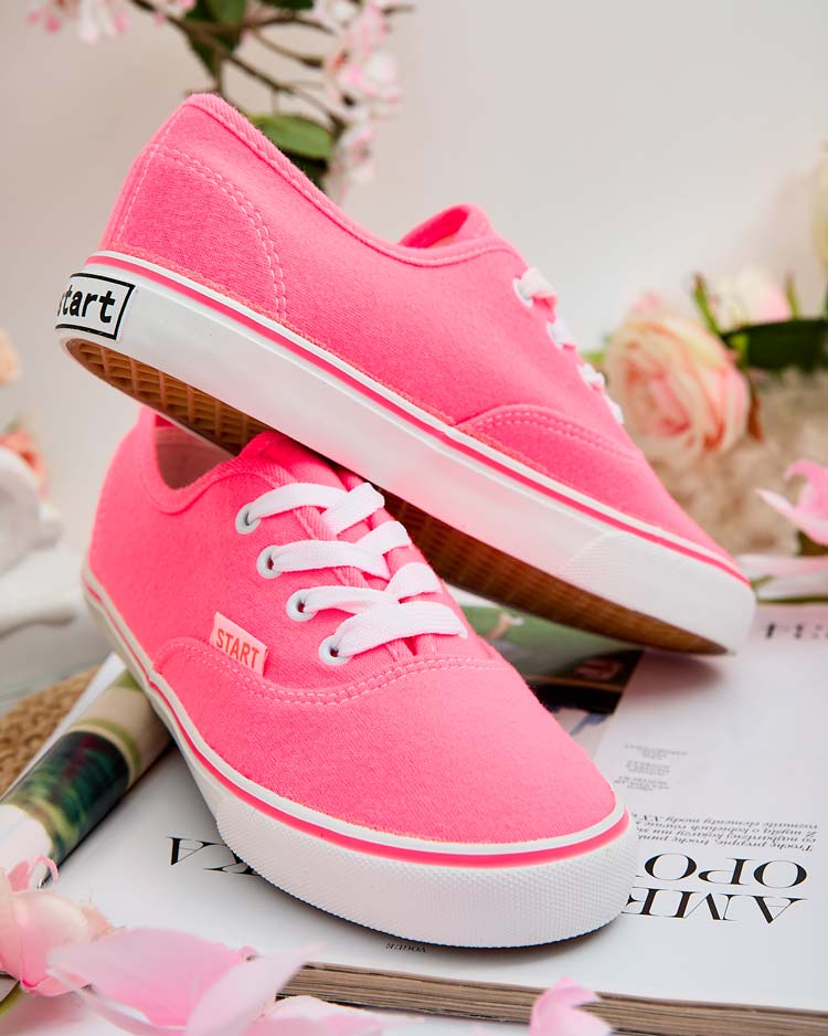 • Lightweight women's sports shoes in the style of sneakers on a flat sole. Lace-up upper made of fabric. Inside the insole made of fabric material. Great for summer walks!