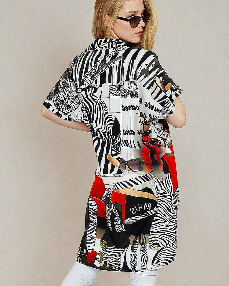 - Women's patterned tunic with a v-neck and long sleeves. Made of pleasant material. Model with asymmetrical bottom. Feel the spring atmosphere with it!
