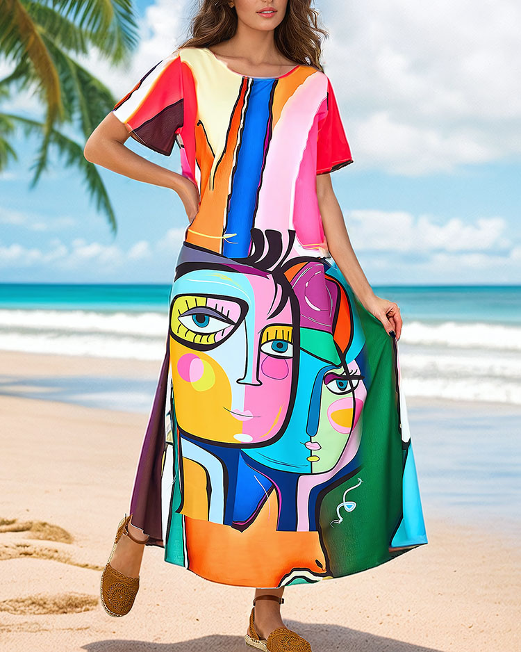- Women's midi dress with round neckline and short sleeves. Made of pleasant material. The model has a decorative print. A perfect base for every day!