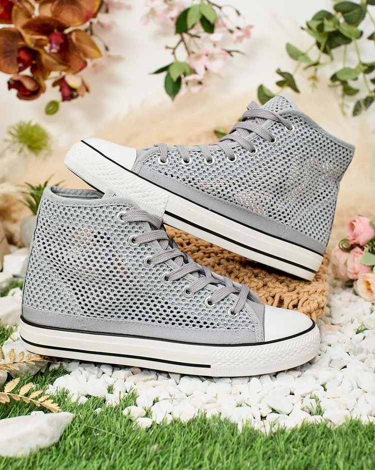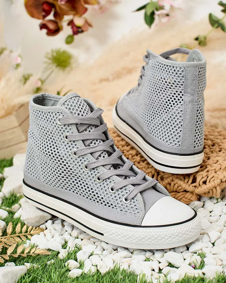 - Women's flat sole shoes. The casual style pair is made of fabric material with openwork finish, fabric insole. Perfect for those who appreciate comfort!